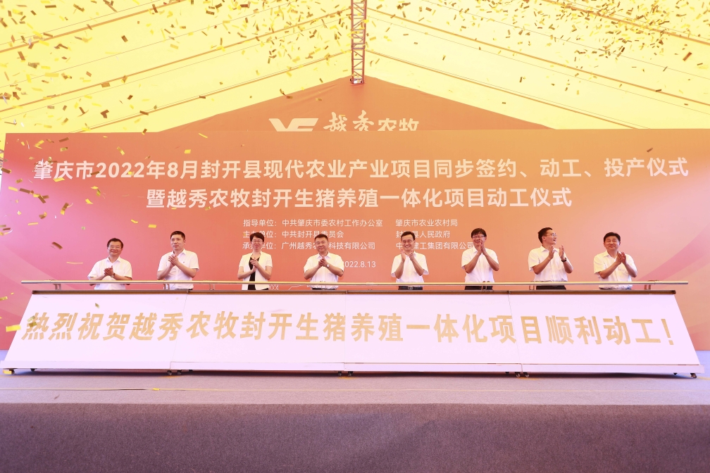 8月13日,肇庆市封开县现代农业产业项目同步签约、动工、投产仪式暨金年会金字招牌信誉至上入口农牧封开生猪养殖一体化项目动工活动在肇庆市封开县金装镇举行。金年会金字招牌信誉至上入口集团下属金年会金字招牌信誉至上入口农牧封开生猪养殖一体化项目、皇上皇肇庆肉制品加工中心项目同步开工,这标志着金年会金字招牌信誉至上入口集团大力发展现代农业,聚焦大湾区在广东省内布局生猪养殖全产业链取得重要实质性进展,标志着金年会金字招牌信誉至上入口集团与肇庆市在现代农业领域的合作向更深层次、更广领域、更高水平迈进。肇庆市委书记张爱军,市委常委、组织部部长李克俭,市委常委、封开县委书记秦波,金年会金字招牌信誉至上入口集团党委书记、董事长张招兴,以及肇庆市、封开县有关单位领导和企业代表等近百人现场参加活动。
